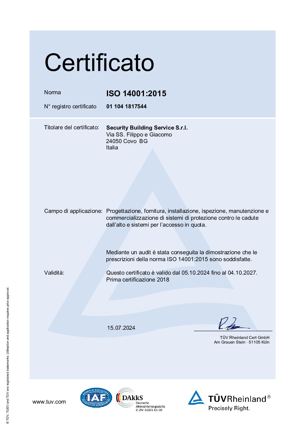 CERTIFICAZIONI